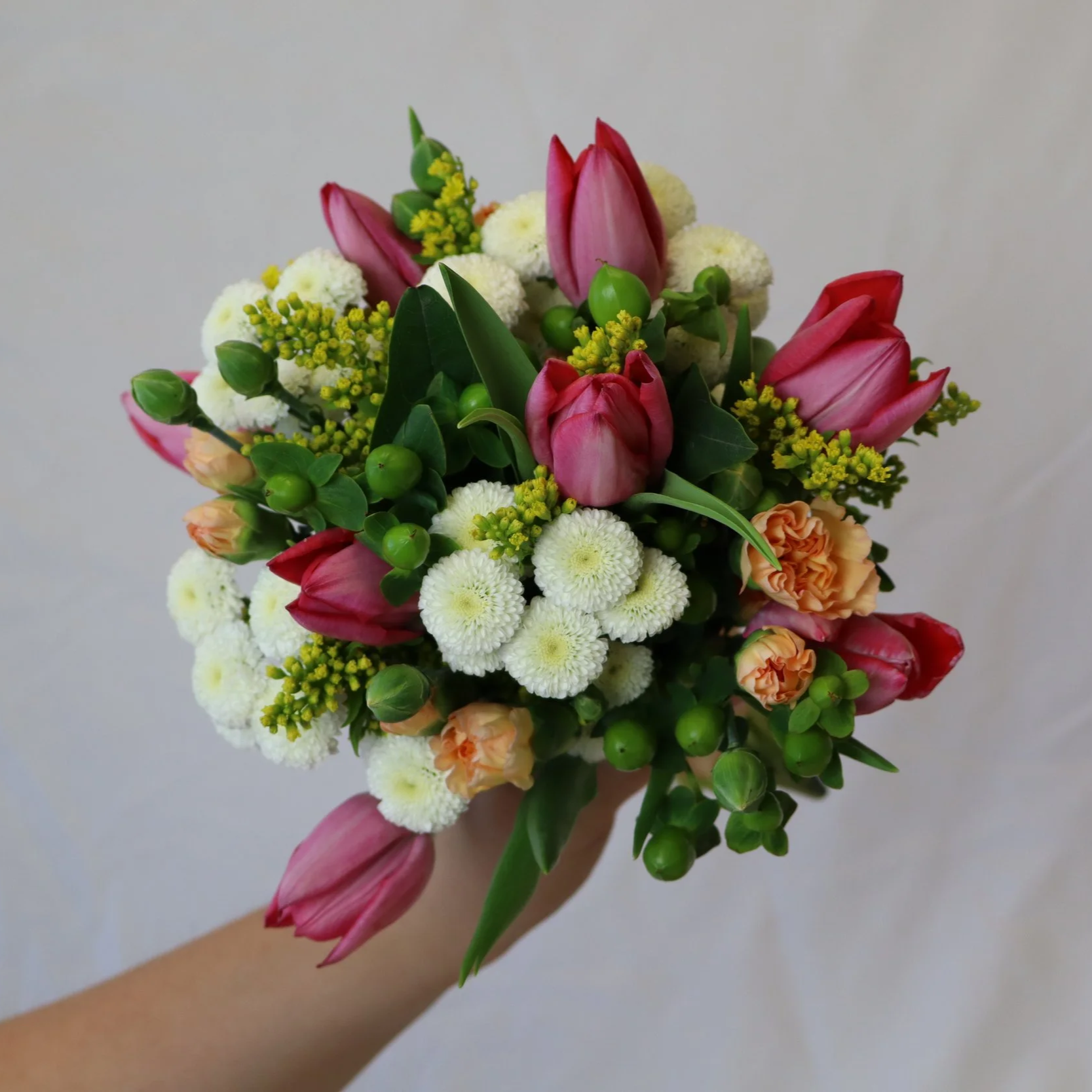 Make a statement with this hand-tied clutch bouquet featuring six full-sized roses in your choice of color, accented with delicate baby’s breath and lush greenery. Finished with satin-wrapped stems for a polished, elegant look—perfect for prom night or any special occasion.